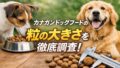 実際に調べてみると、フードの種類によって粒の大きさが大きく変わることはなく、ほぼ共通したサイズ設計であることがわかっています。